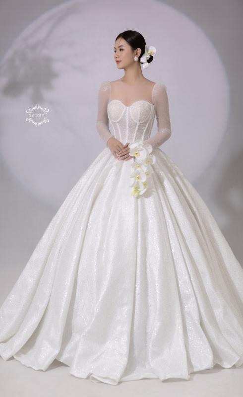 Sở hữu dáng mermaid ôm trọn đường cong, Chapter 7 gây ấn tượng với phần thân trên được xử lý tinh tế, chi tiết cut - out khéo léo kết hợp corset sắc nét, gợi nên hình ảnh nàng dâu hiện đại, nữ tính nhưng vẫn đầy cá tính.