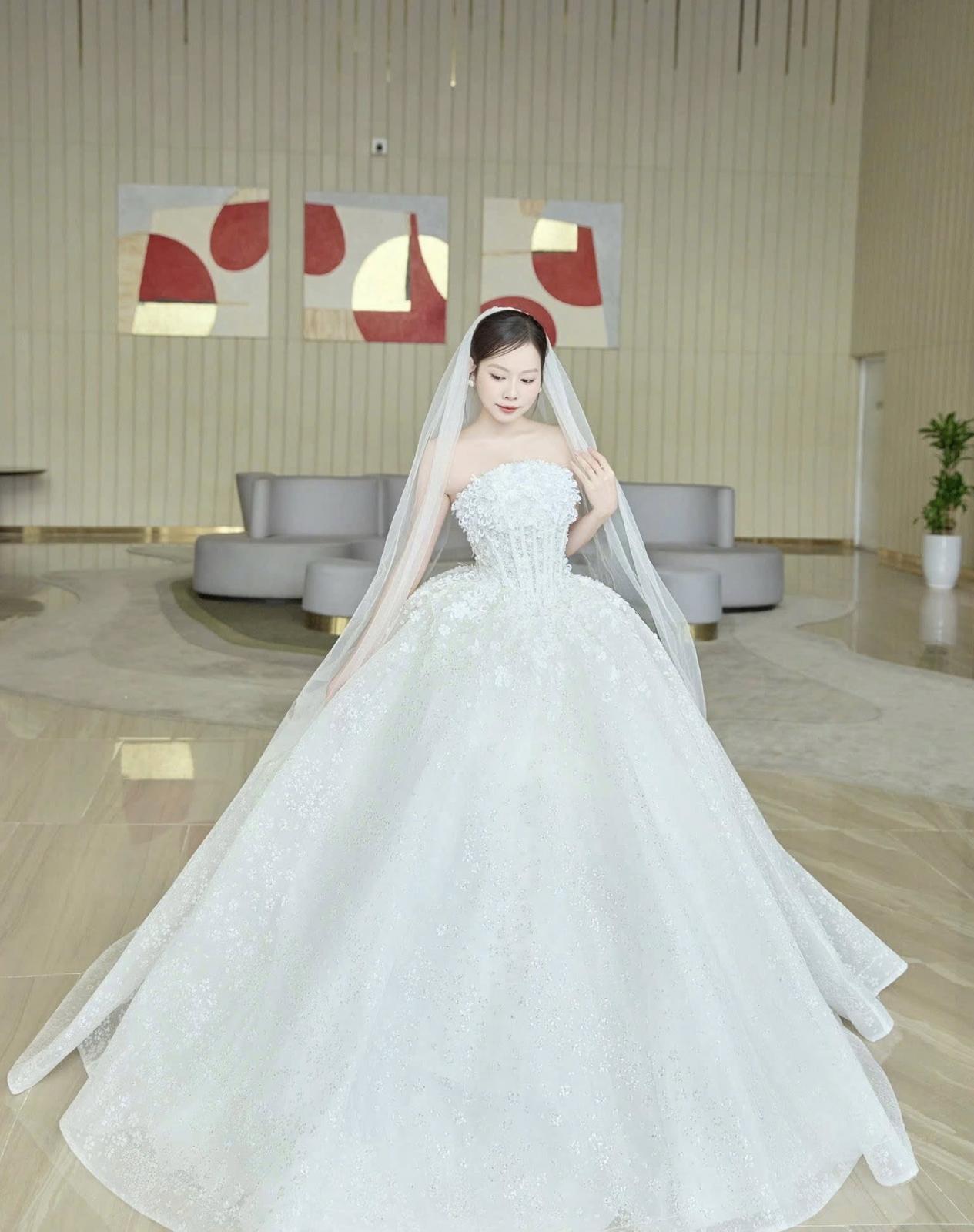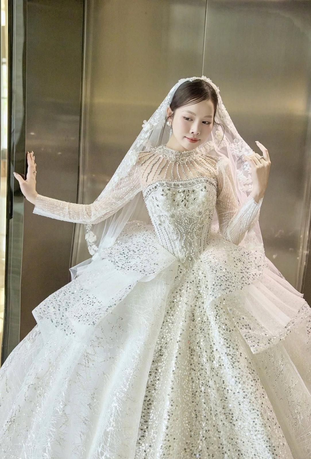 Giữa không gian thử váy sang trọng, khoảnh khắc Ngọc Yến lựa chọn thiết kế cưới cùng Kim Couture mang theo sự lắng đọng rất riêng. Từng lớp ren thêu thủ công, phom dáng được xử lý chuẩn xác và những chi tiết xếp tầng mềm mại đều được chăm chút để tôn lên vẻ đẹp thanh thoát nhưng đầy khí chất của cô dâu.
