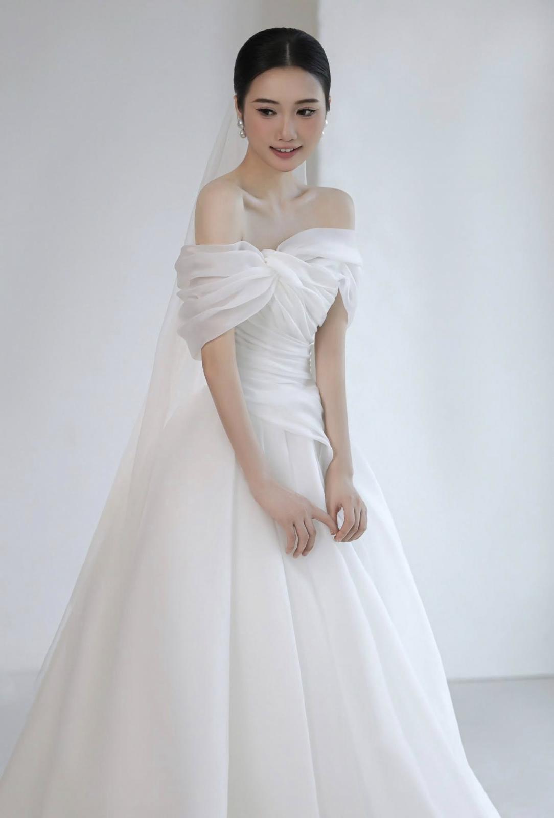 Floral Whisper mang đến vẻ đẹp thanh thoát và đầy nữ tính với phom dáng chữ A xòe nhẹ nhàng. Thiết kế trễ vai tôn lên nét mềm mại, tạo nên sự quyến rũ tinh tế mà bất kỳ nàng dâu nào cũng yêu thích. Đây là lựa chọn hoàn hảo cho nàng dâu chụp pre-wedding1 ... See more