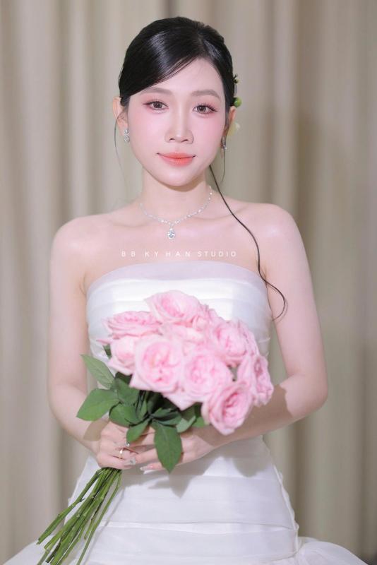 Makeup tone Hồng Cam nhẹ nhàng cho nàng dâu chụp tại studio style Hàn