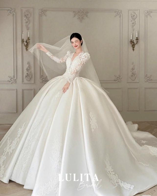 Tựa như “ngôn ngữ của hạnh phúc”, mẫu váy cúp ngực từ chất liệu satin cao cấp, điểm xuyết những đóa hoa 3D tinh xảo, tôn lên nét yêu kiều và dịu dàng theo từng bước chân nàng. Khoảnh khắc nàng khoác lên mình chiếc váy ấy, cũng là khi vẻ đẹp và sự tự tin được thăng hoa trọn vẹn nhất.