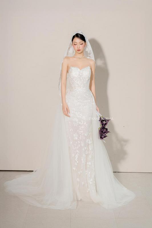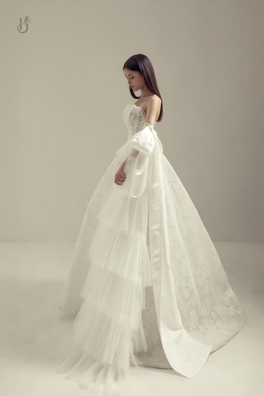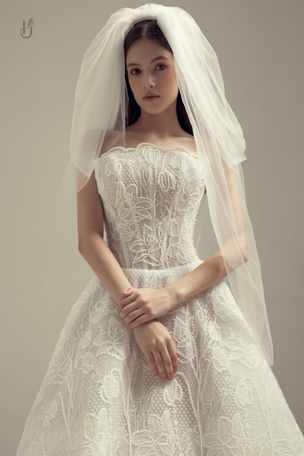 Look 5 là lựa chọn dành cho những nàng dâu yêu vẻ đẹp tinh tế, sang trọng nhưng vẫn giữ trọn nét thuần khiết và lãng mạn – một khoảnh khắc rực rỡ, nhẹ tênh và đầy cảm xúc khi bước vào lễ đường 🤍✨