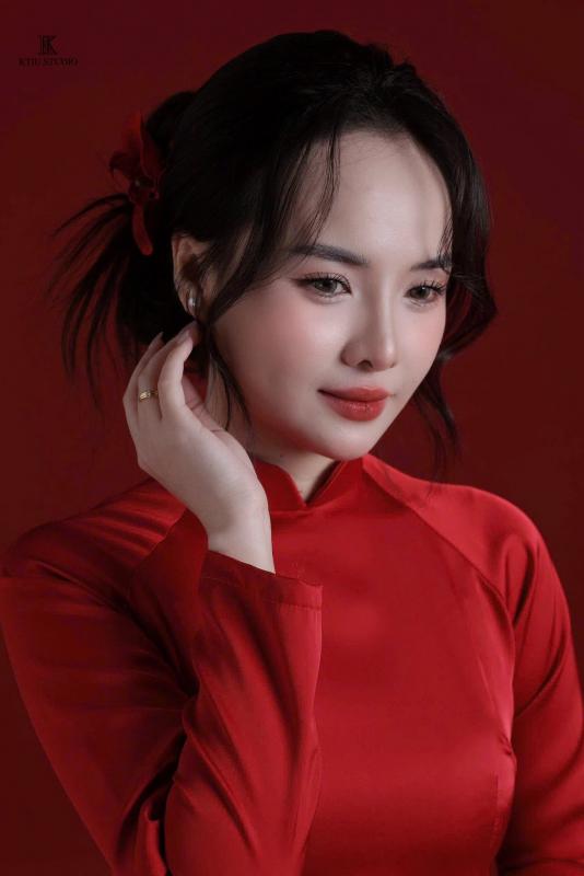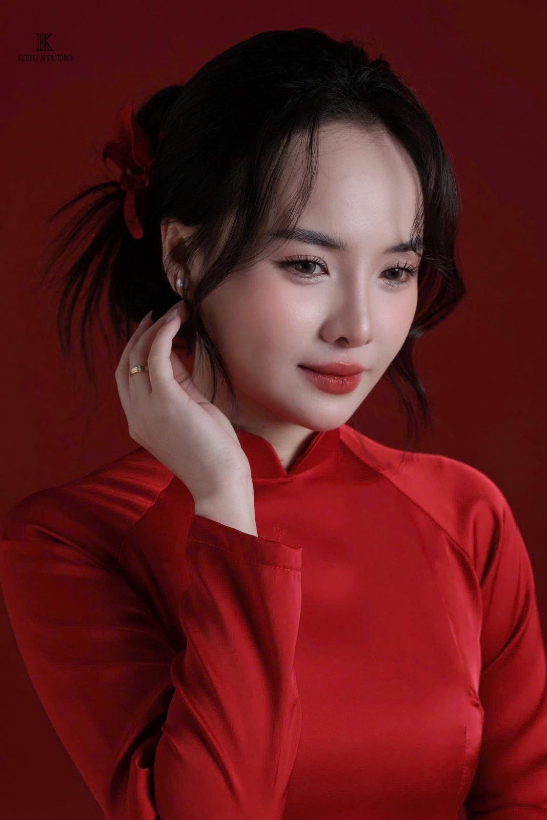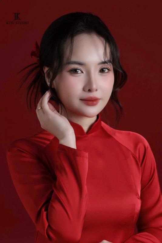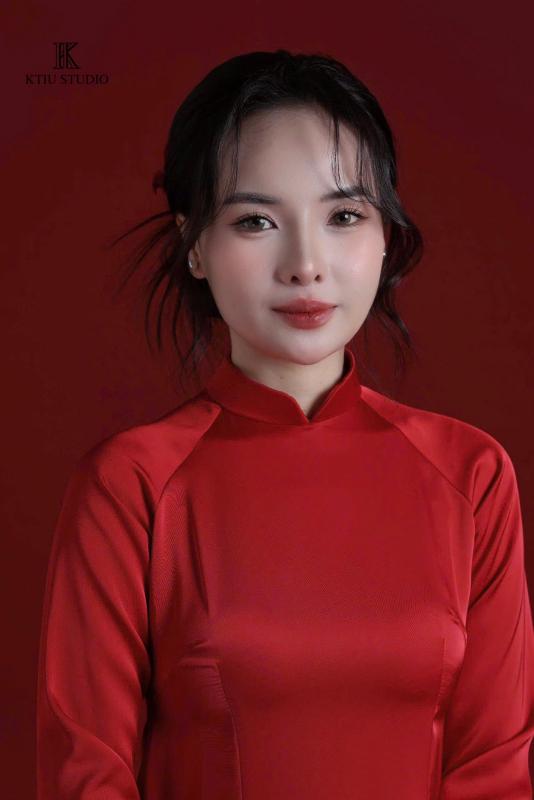 “Nét đẹp truyền thống trong sắc đỏ rực rỡ – khi makeup tinh tế hòa cùng tà áo dài duyên dáng.” ❤️