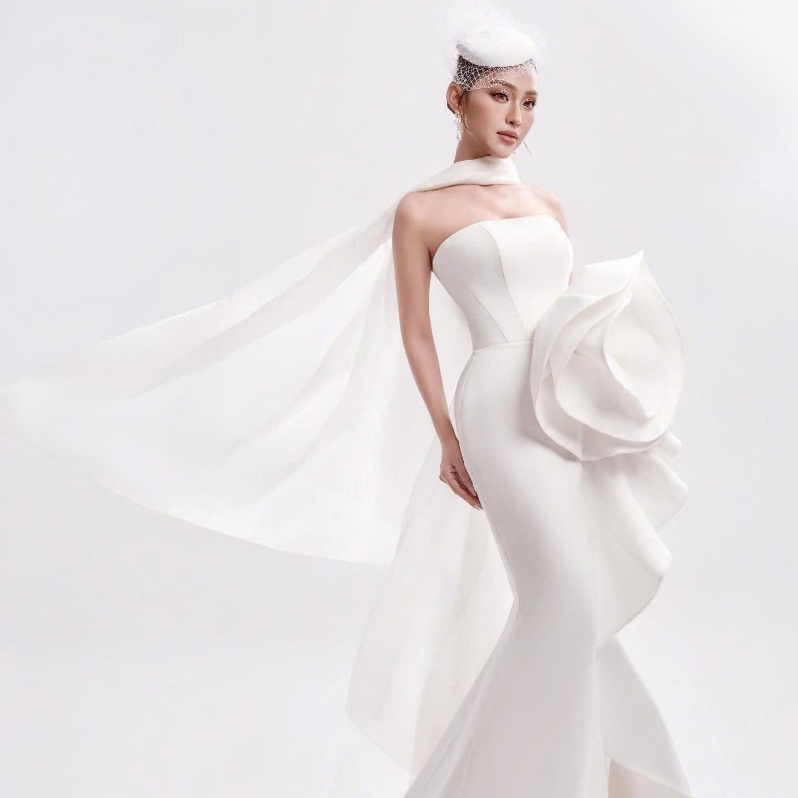 Phần corset xuyên ren được dựng phom tỉ mỉ trong hàng chục giờ liền, nâng đỡ vóc dáng nàng dâu, để mỗi chuyển động đều hiện lên như một điệp khúc dịu dàng .