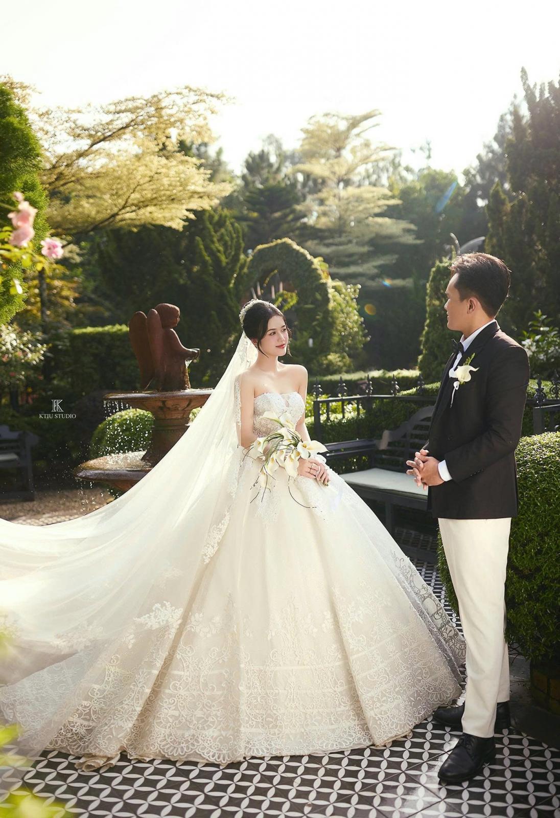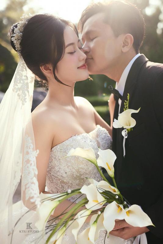 Mỗi góc nhỏ đều được bao phủ bởi sắc xanh mướt, những bụi hoa nở rộ mềm mại như chạm tay vào giấc mơ. Cô dâu – chú rể đứng giữa khung cảnh ấy chẳng cần cố gắng cũng toát lên vẻ tinh khôi, trong trẻo. Chỉ cần nắm tay nhau, mọi khoảnh khắc đều hóa thành bức tranh tình yêu nhẹ nhàng và đầy cảm giác an yên.