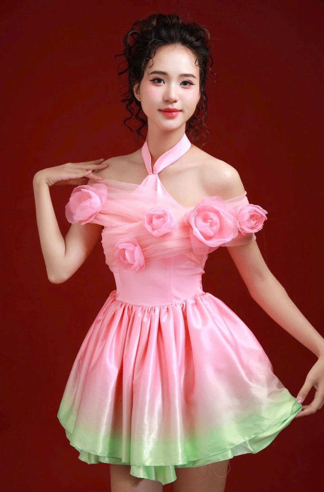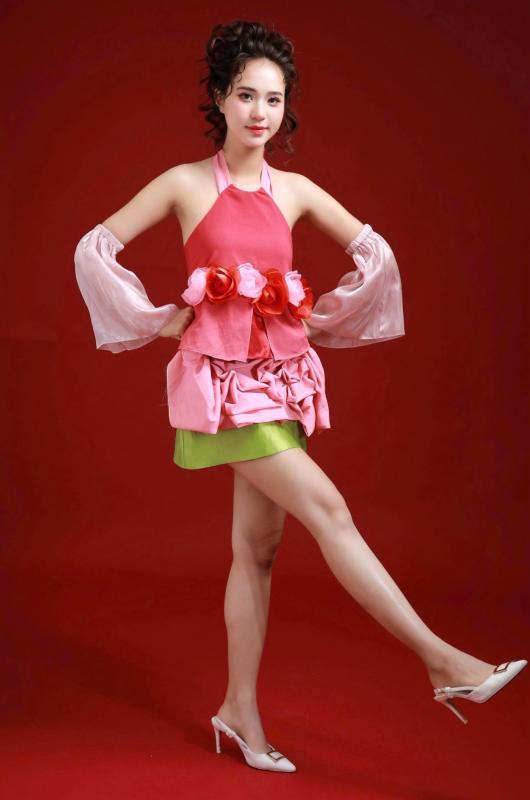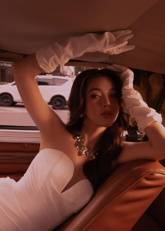 Phần thân trên ôm gọn, chân váy xòe vừa phải giúp tổng thể cân đối và “ăn gian” chiều cao hiệu quả.