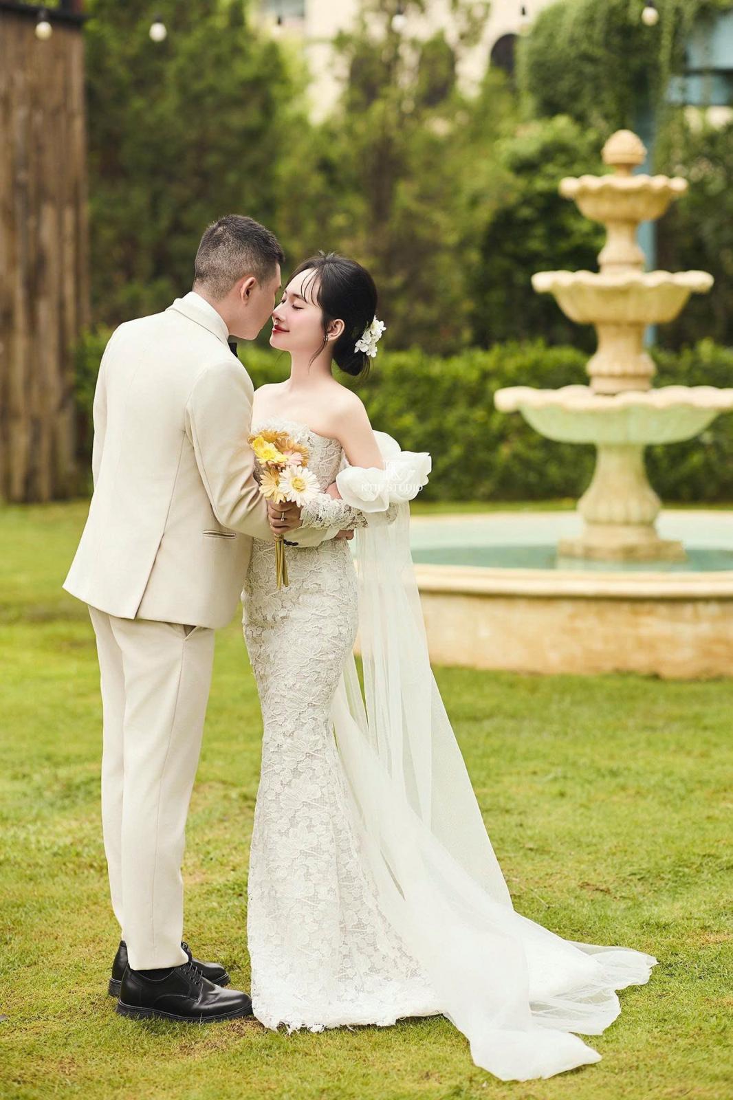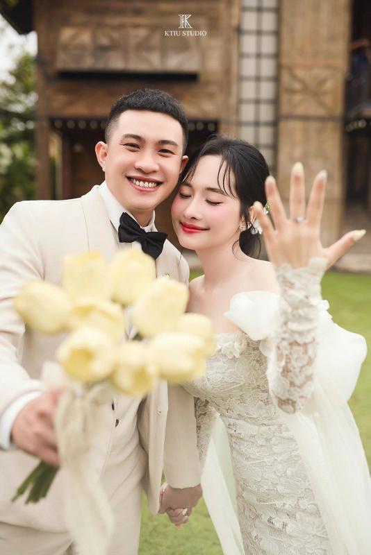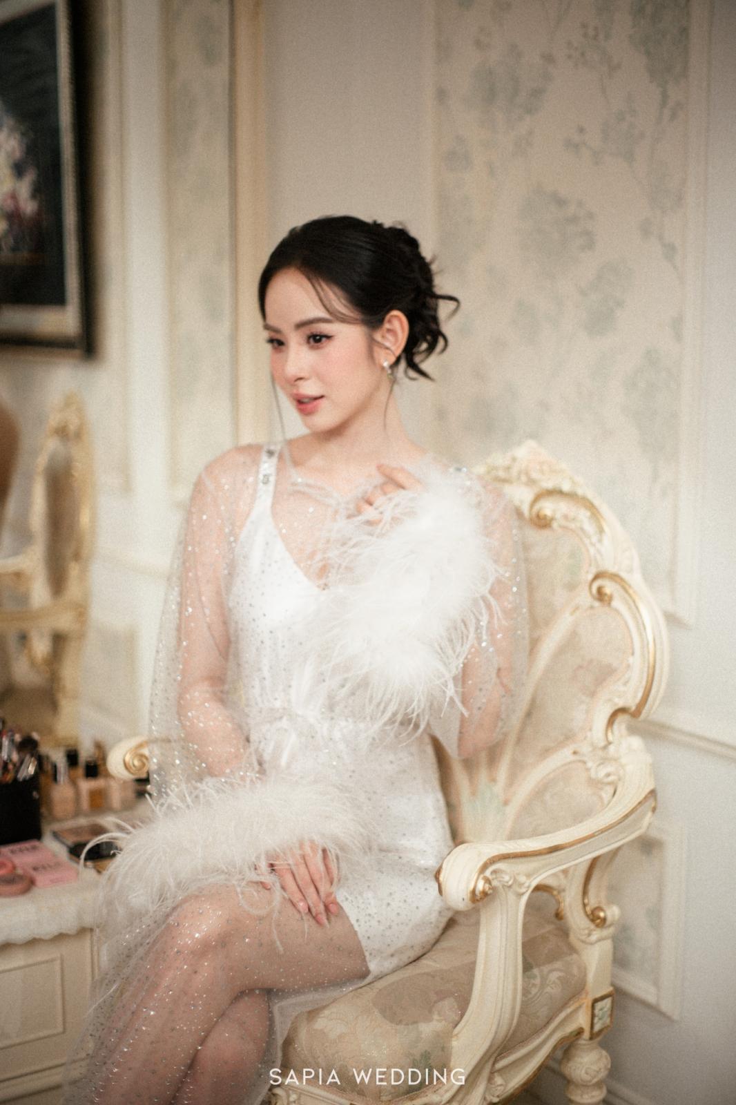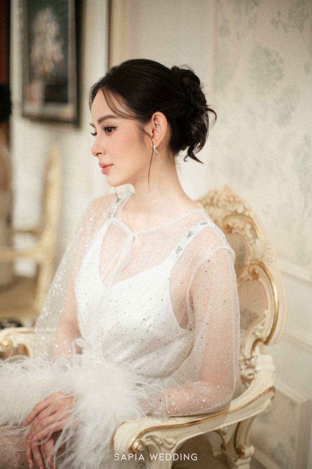 Thiết kế chú trọng vào sự bồng bềnh, bay bổng, làm nổi bật đường nét thanh thoát và nét kiêu sa vốn có của cô dâu. Sự kết hợp này mang lại cảm giác vừa cổ điển, vừa hiện đại, giúp cô dâu Hương Liên lưu giữ trọn vẹn những khoảnh khắc bay bổng, ngọt ngào và lãng mạn nhất.