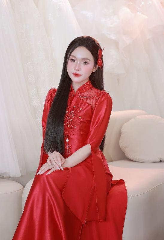 Có những khoảnh khắc trong ngày cưới không cần quá nhiều lời, chỉ cần một chiếc áo dài đỏ là đủ kể hết cả câu chuyện yêu thương.