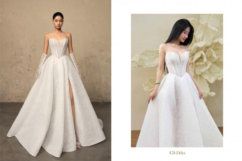 Và bộ sưu tập đến từ Luminous Grace đã được các cô dâu yêu thích và ủng hộ cực nhiều. Nếu trên người mẫu, chiếc váy thể hiện kỹ nghệ, phom dáng, vẻ đẹp chuẩn mực được nhà thiết kế tạo nên, thì khi chạm vào khoảnh khắc thật - được cô dâu diện vào - các thiết kế lại kể một câu chuyện khác: câu chuyện về tình yêu, về tính cách của cô dâu, về nét đẹp mà cô dâu ao ước, hay đơn thuần là hình ảnh cô dâu nhìn thấy mình - ở phiên bản hoàn hảo nhất.
