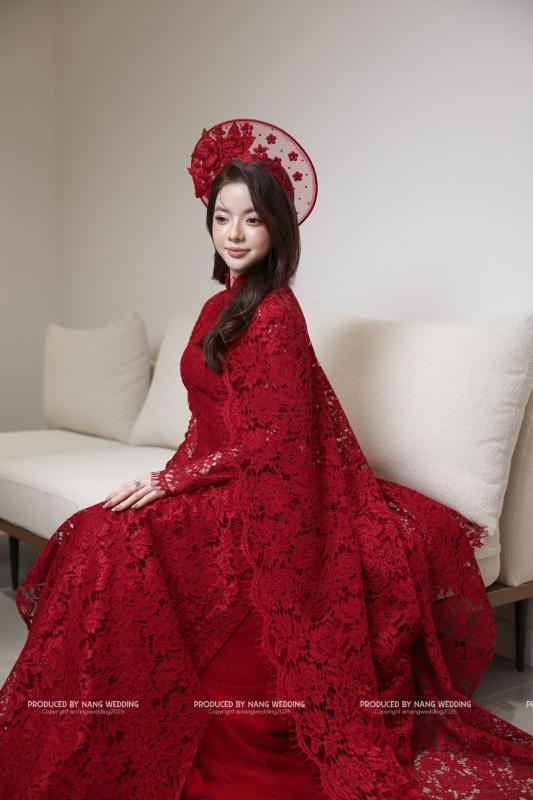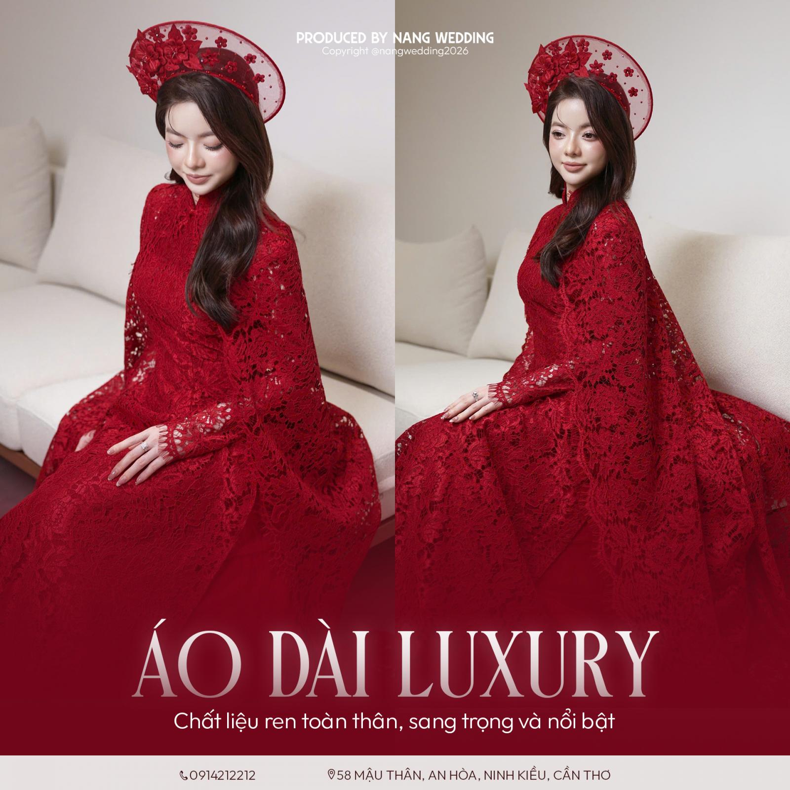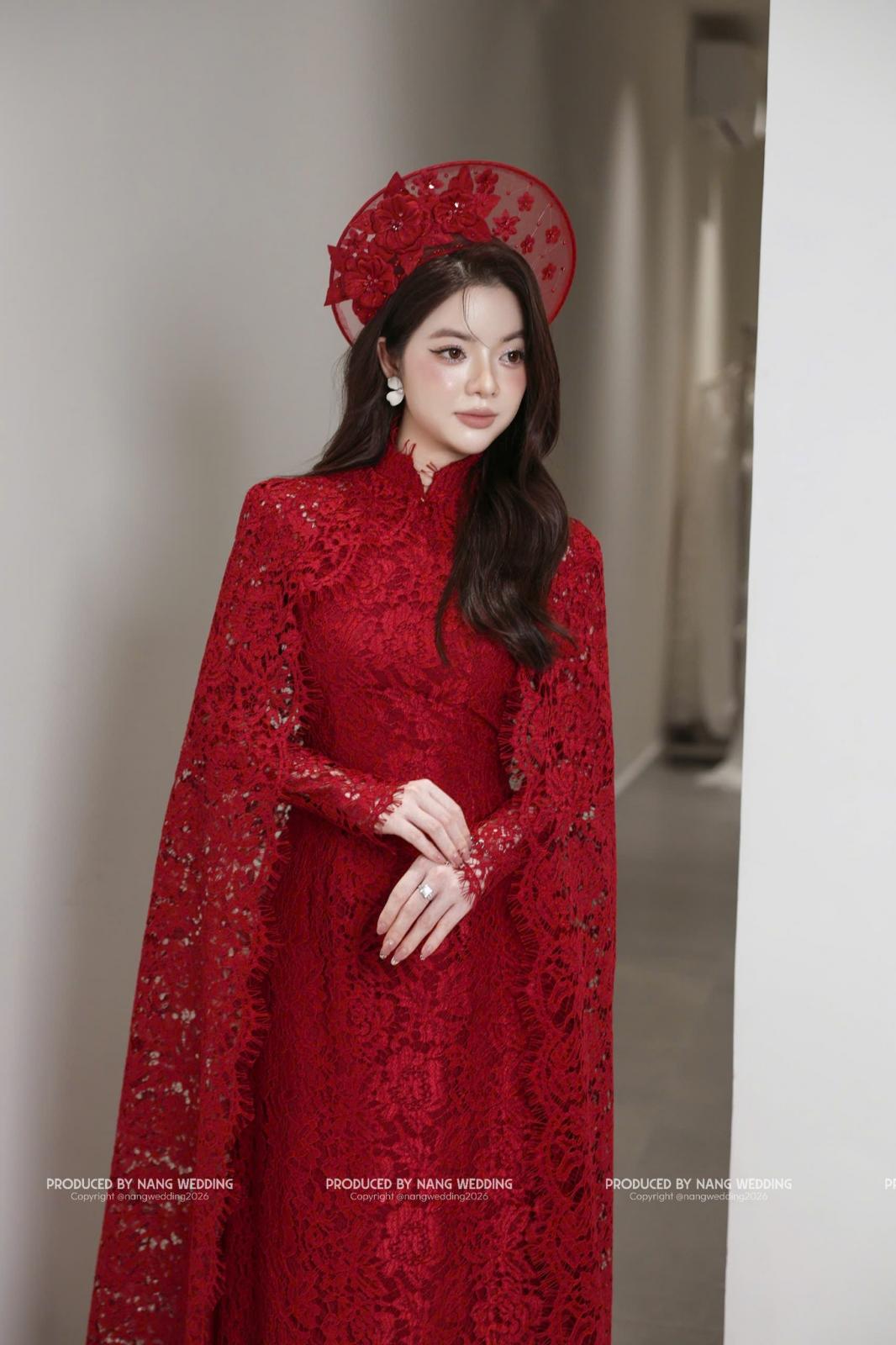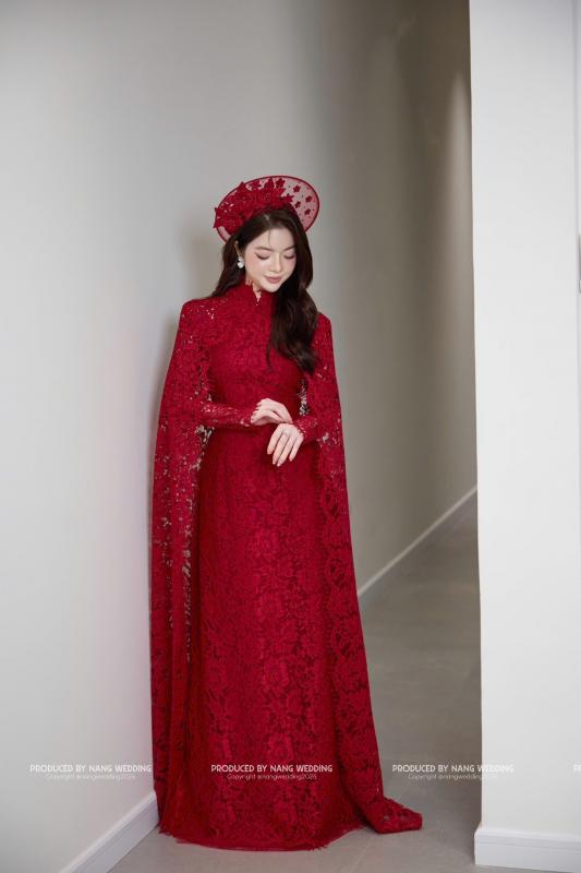 Áo dài đỏ ren cao cấp – nơi nét đẹp truyền thống được nâng tầm sang trọng.