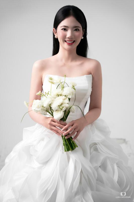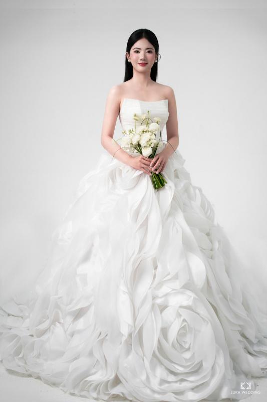 Vẫn là thiết kế strapless kinh điển, Luka Wedding mang đến 'làn gió mới' cho cô dâu hiện đại với phần tùng váy được xử lý độc đáo. Tựa như một đoá hoa rực rỡ, mở ra một khu vườn để nàng được đắm chìm trong vẻ đẹp của riêng mình, bộ cánh giúp cho diện mạo của cô dâu trở nên đặc sắc hơn bao giờ hết. Cùng với bộ ảnh cưới của cô dâu với phông nền tối giản, thiết kế ball-gown này càng giúp cho bộ ảnh cưới của cô dâu trở nên nổi bật. Tôn vinh được cá tính & nét độc bản của cô dâu.