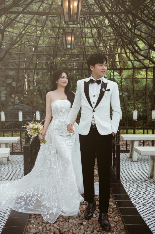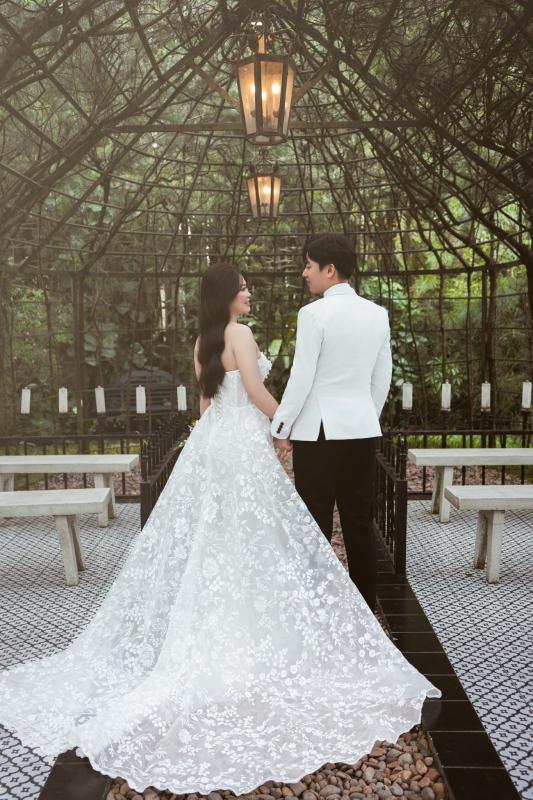 Giữa khung cảnh lãng mạn của phim trường Vũ Grand từng ánh nhìn, nụ cười của chú rể Minh Luân và cô dâu Thủy My như tan vào không gian tràn ngập sắc xanh và ánh sáng dịu dàng.