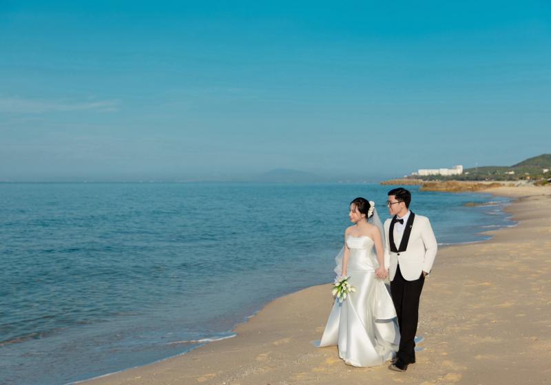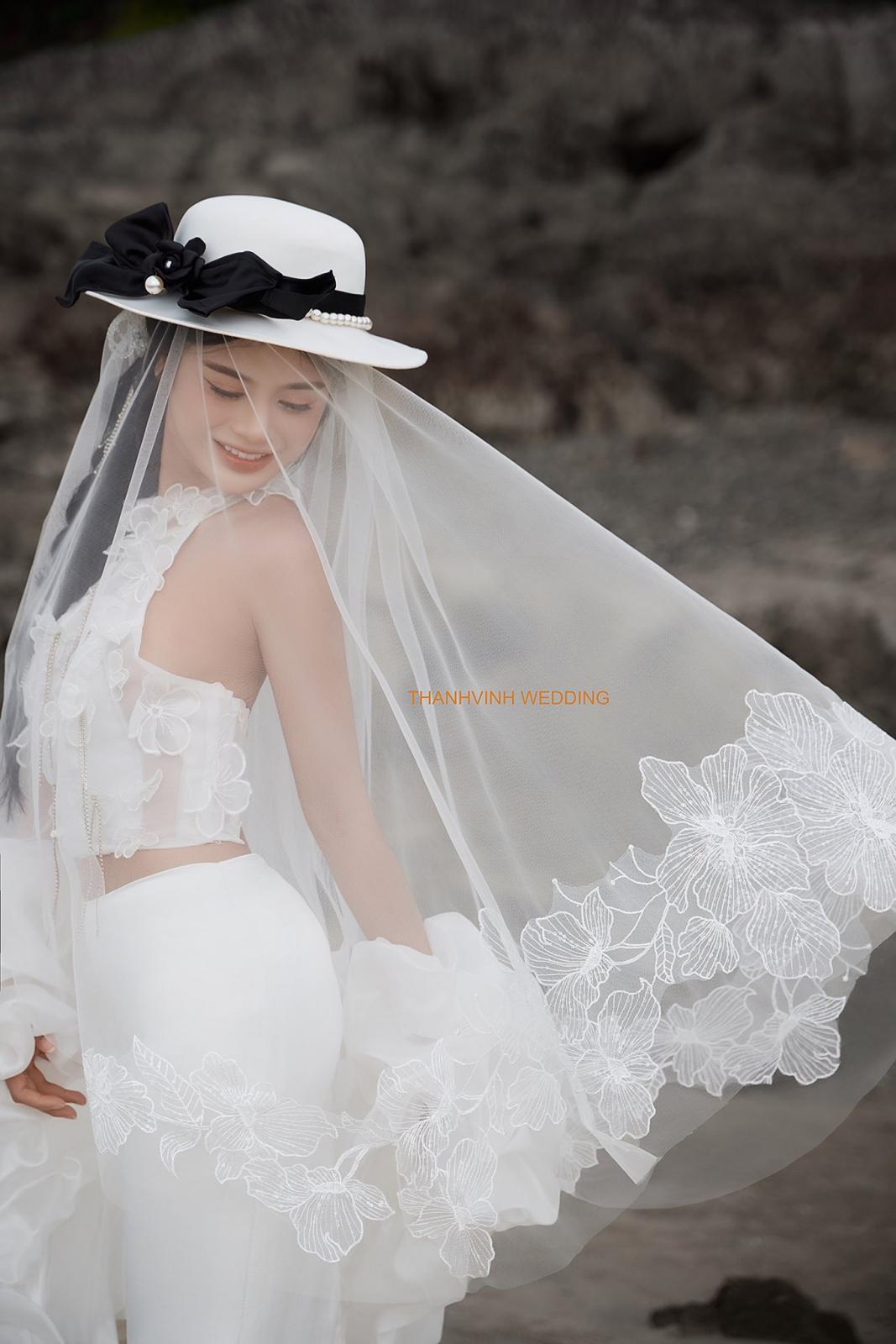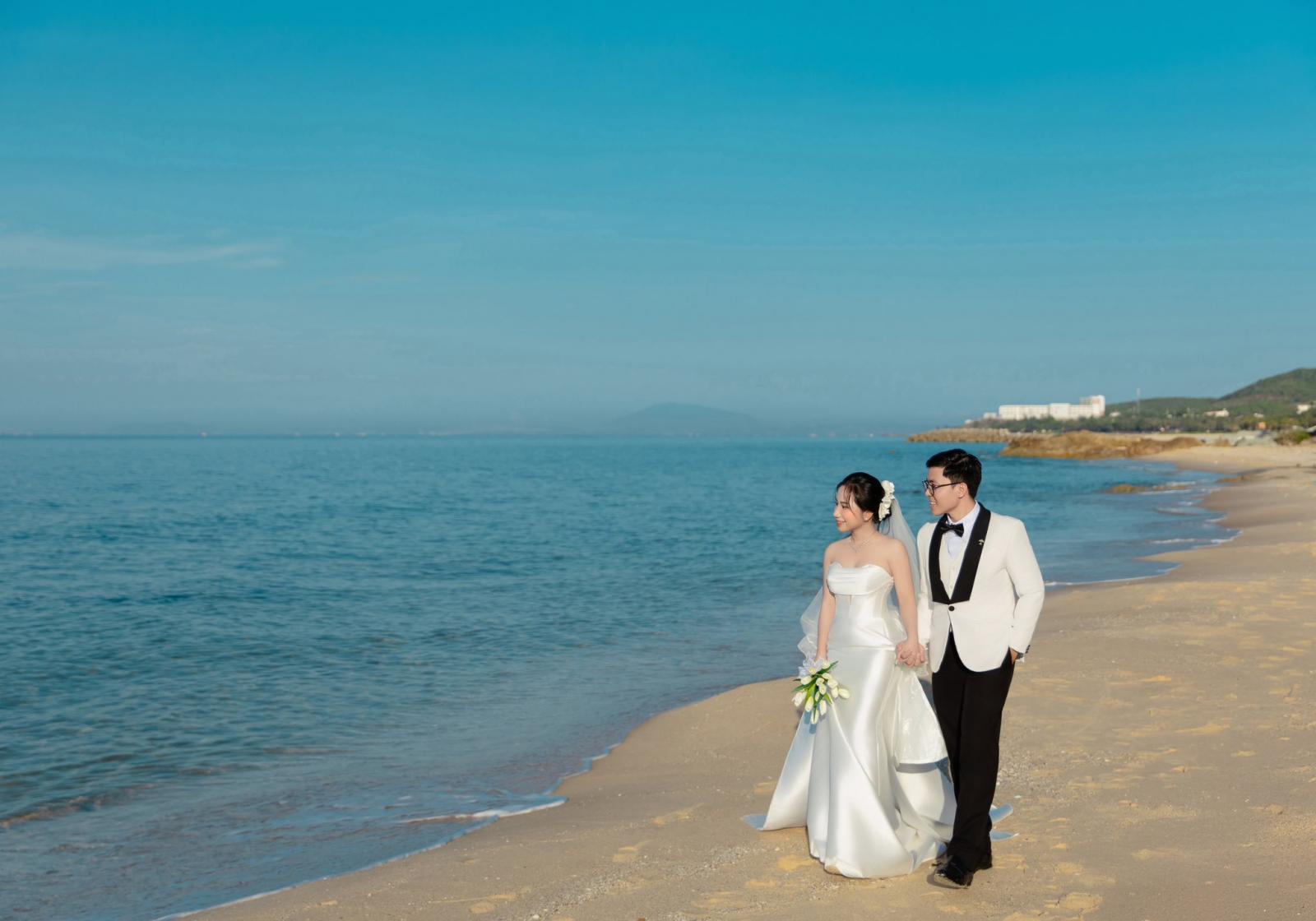 Không cần quá nhiều chi tiết cầu kỳ, chiếc váy vẫn khiến người đối diện phải ngẩn ngơ bởi sự tối giản mà tinh tế – như chính vẻ đẹp tự nhiên và tự tin của nàng trong ngày trọng đại.