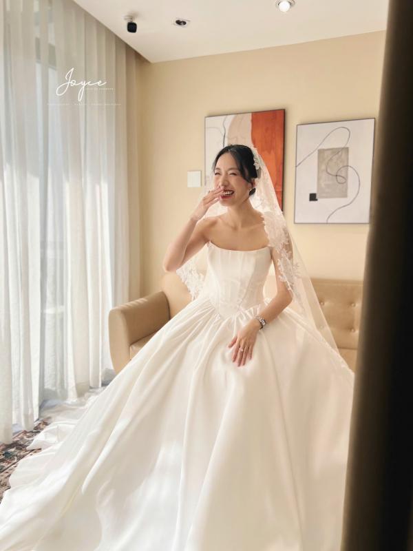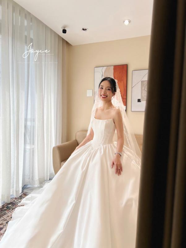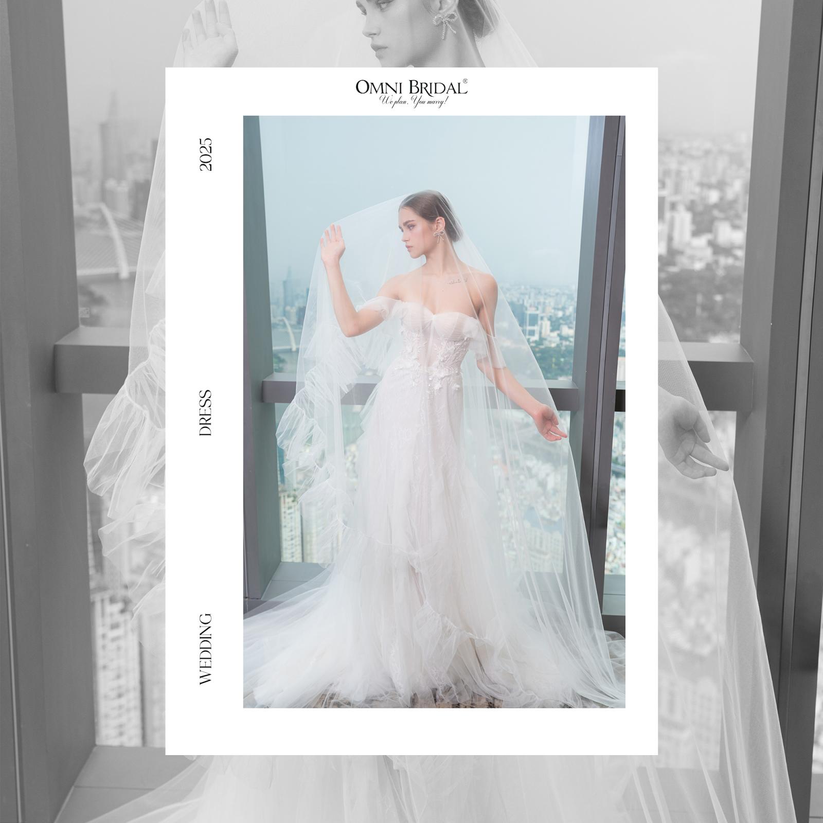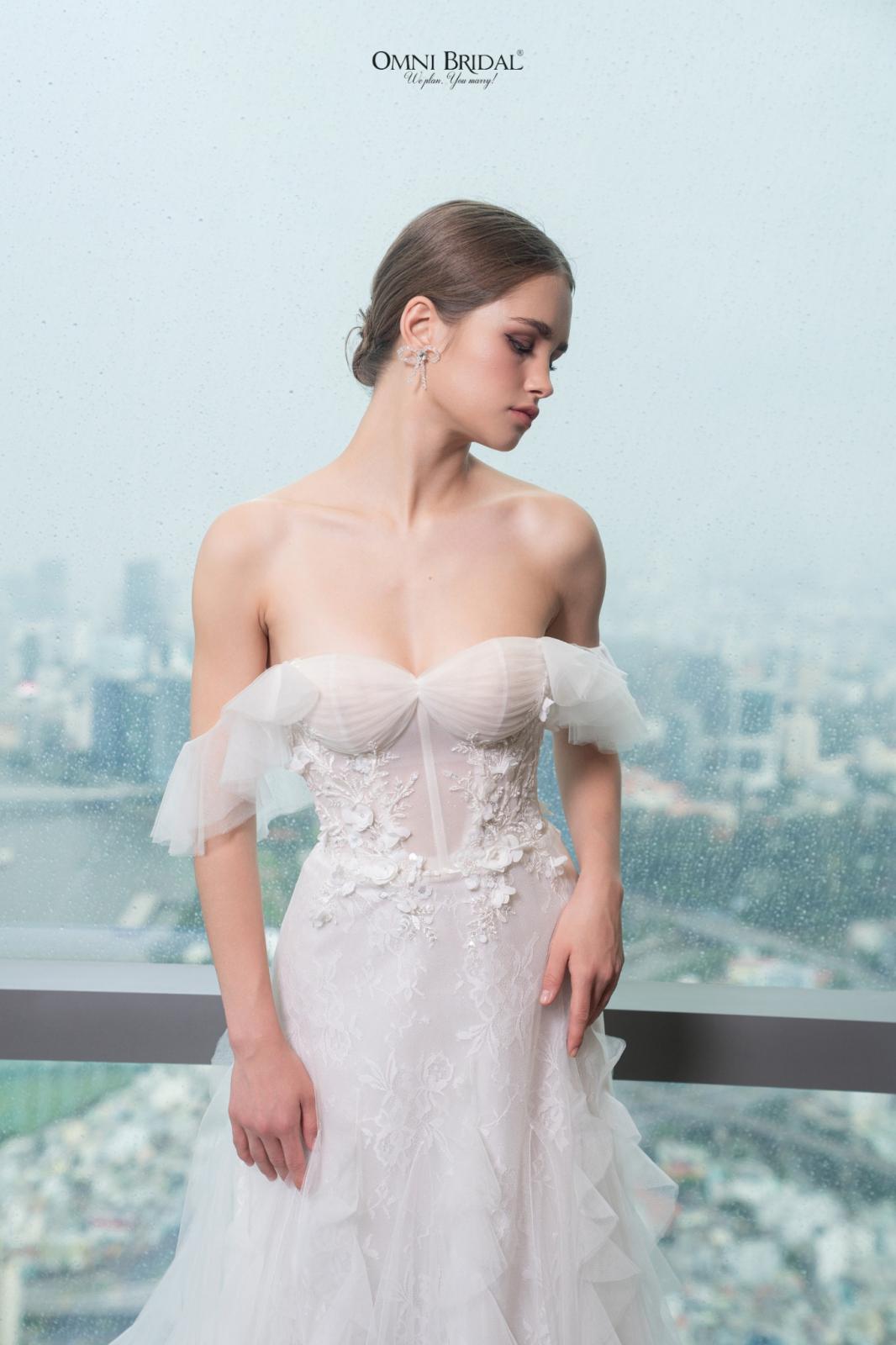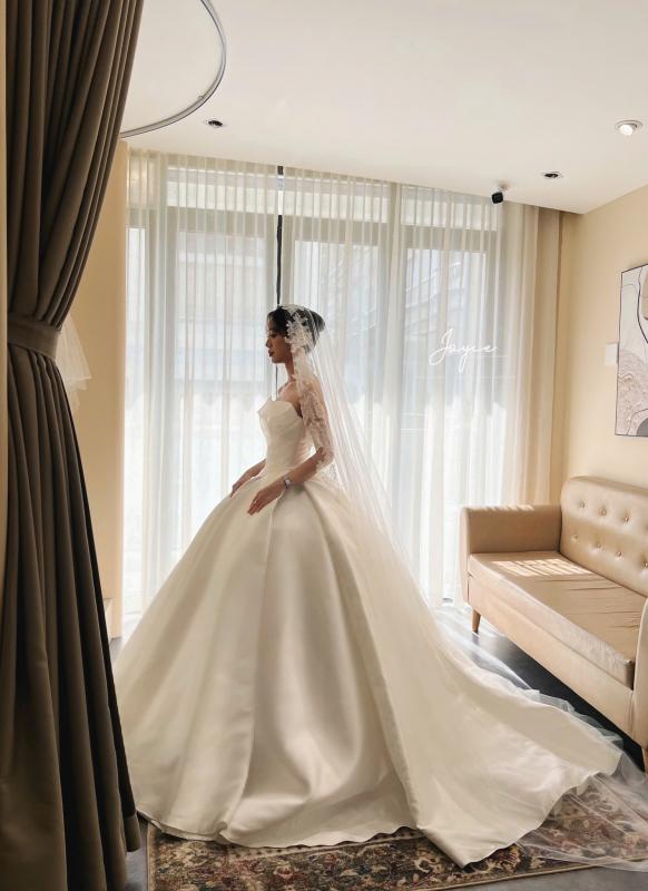 Thiết kế dành cho nàng dâu yêu nét nữ tính hiện đại, đủ tinh tế để tỏa sáng, đủ mềm mại nhưng vẫn giữ được cá tính và dấu ấn rất riêng trong ngày trọng đại.
